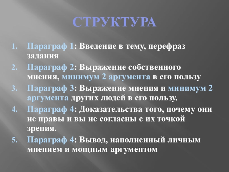 Параграф 3: Выражение мнения и минимум 2 аргумента других людей в его пользу.