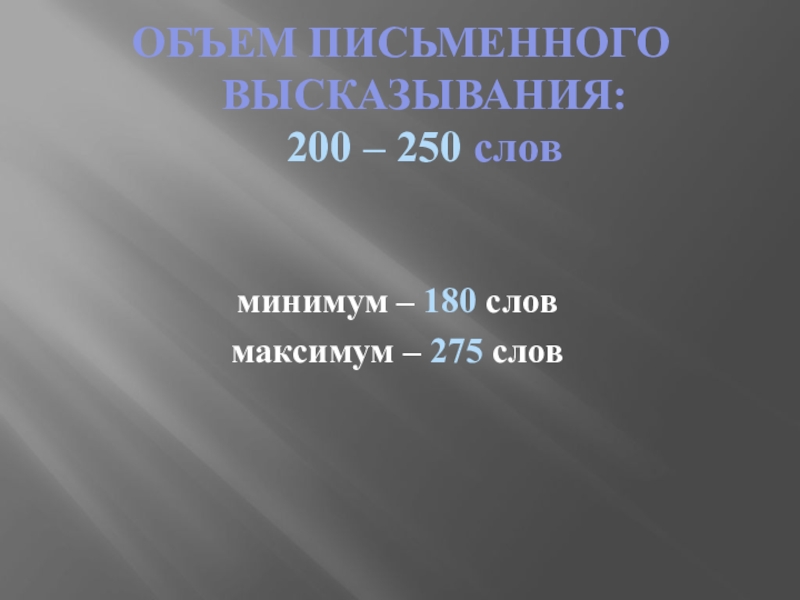 Слайд 3ОБЪЕМ ПИСЬМЕННОГО ВЫСКАЗЫВАНИЯ: