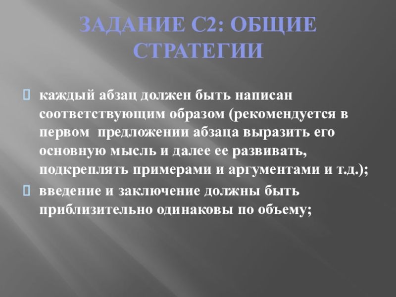 Слайд 5ЗАДАНИЕ С2: ОБЩИЕ СТРАТЕГИИ