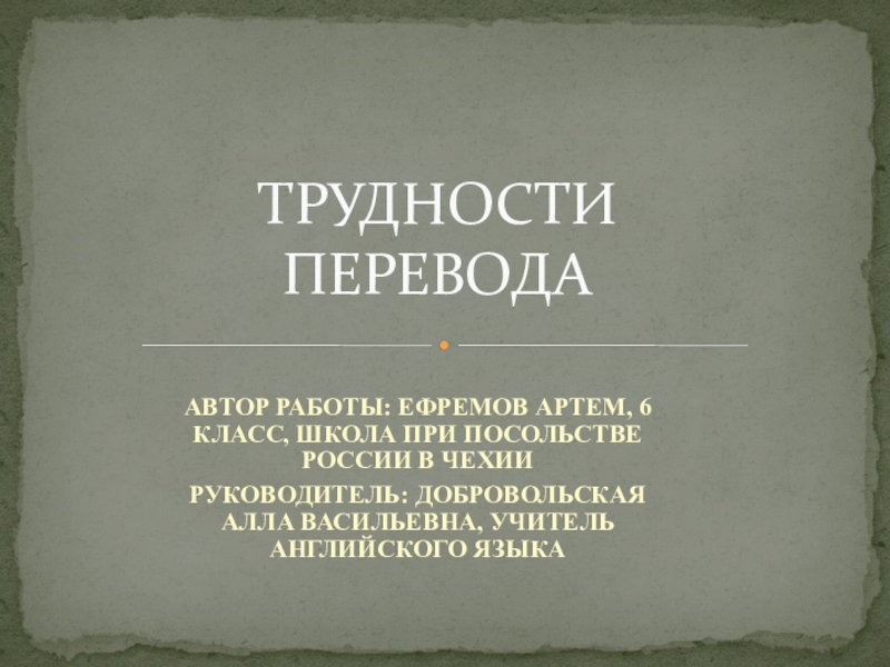 РУКОВОДИТЕЛЬ: ДОБРОВОЛЬСКАЯ АЛЛА ВАСИЛЬЕВНА, УЧИТЕЛЬ АНГЛИЙСКОГО ЯЗЫКА