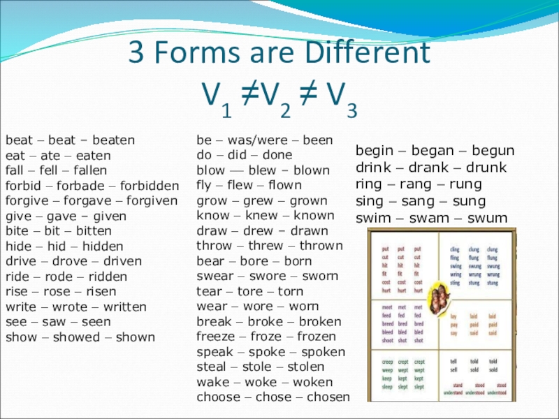 sing – sang – sung
