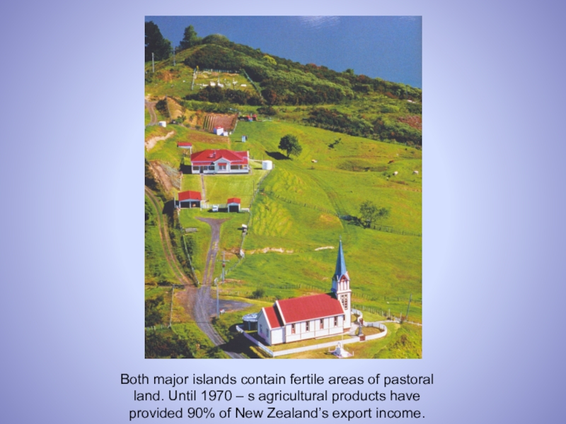 Слайд 5Both major islands contain fertile areas of pastoral land. Until 1970