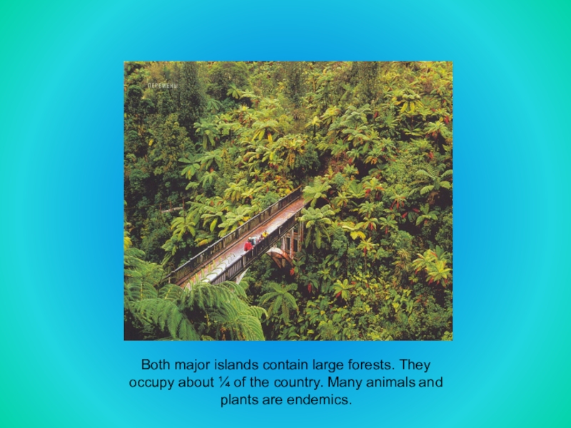 Слайд 7Both major islands contain large forests. They occupy about ¼ of