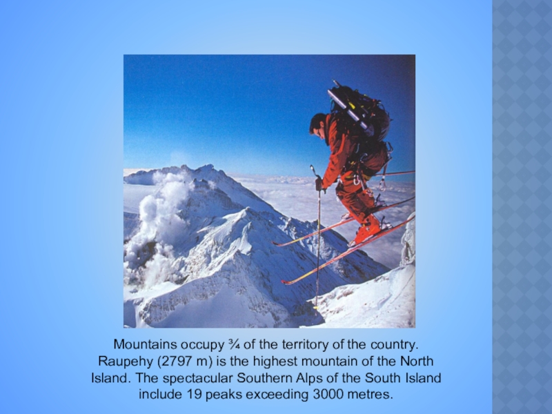 Слайд 6Mountains occupy ¾ of the territory of the country. Raupehy (2797