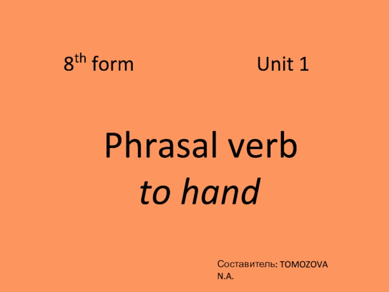 8th formPhrasal verb   to handUnit 1Составитель: TOMOZOVA N.A.