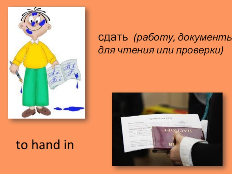 Презентация, доклад по английскому языку на тему Phrasal verb to hand (8 класс)