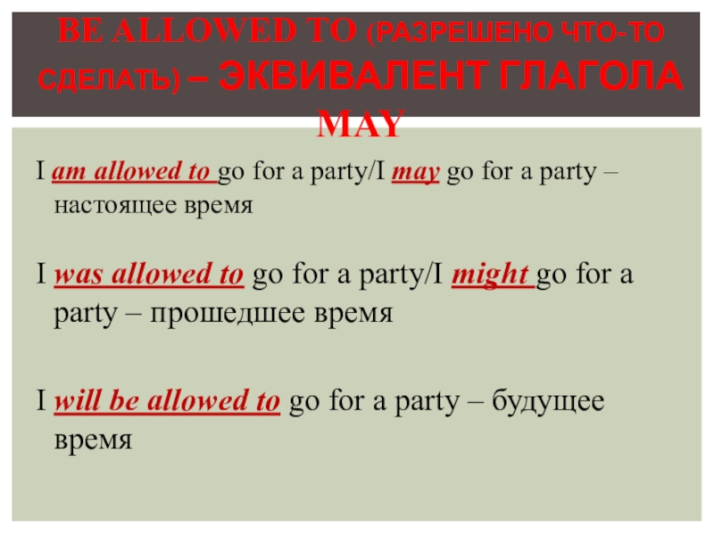 BE ALLOWED TO (РАЗРЕШЕНО ЧТО-ТО СДЕЛАТЬ) – ЭКВИВАЛЕНТ ГЛАГОЛА MAY