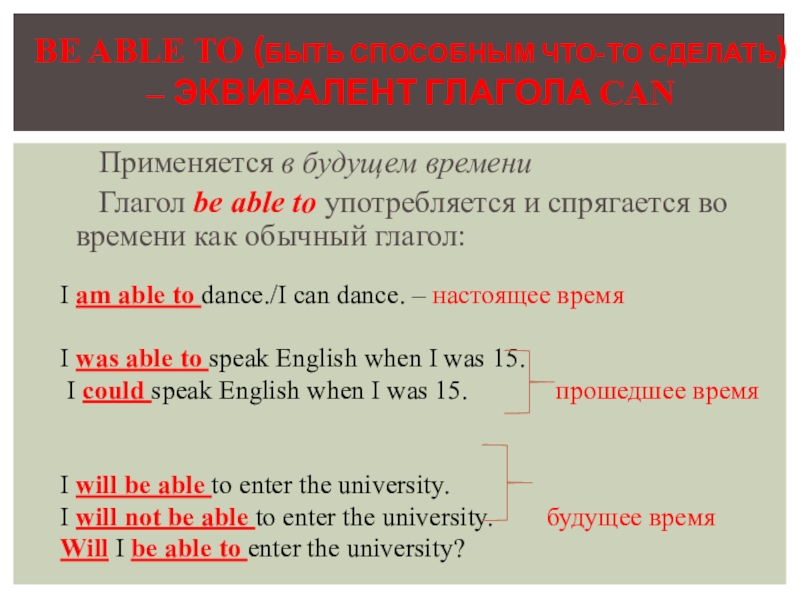 BE ABLE TO (БЫТЬ СПОСОБНЫМ ЧТО-ТО СДЕЛАТЬ) – ЭКВИВАЛЕНТ ГЛАГОЛА CAN