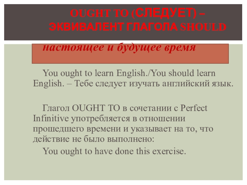 OUGHT TO (СЛЕДУЕТ) –