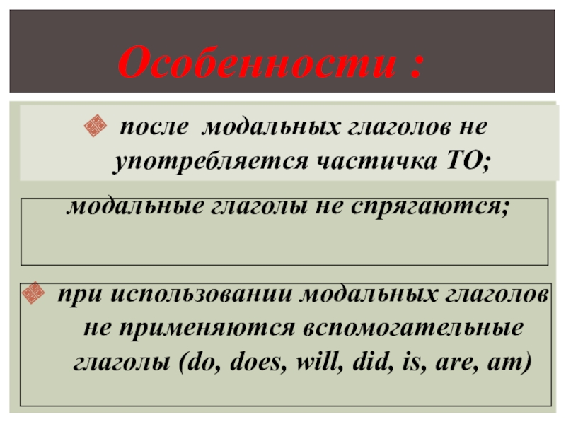 Особенности :