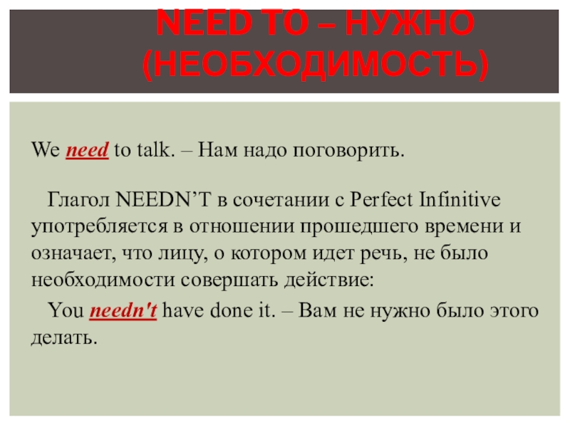 NEED TO – НУЖНО (НЕОБХОДИМОСТЬ)