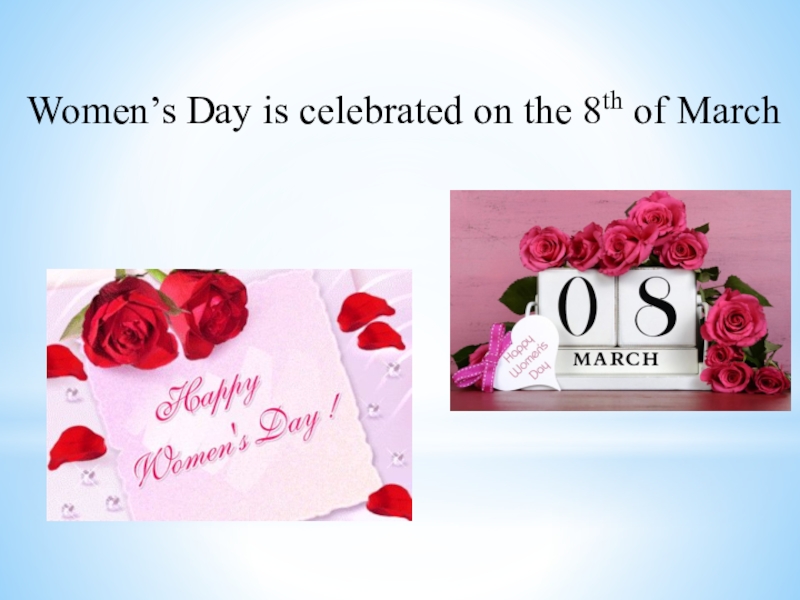 Слайд 5Women’s Day is celebrated on the 8th of March