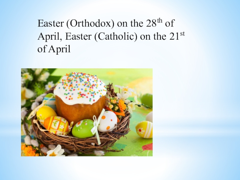 Слайд 8Easter (Orthodox) on the 28th of April, Easter (Catholic) on the