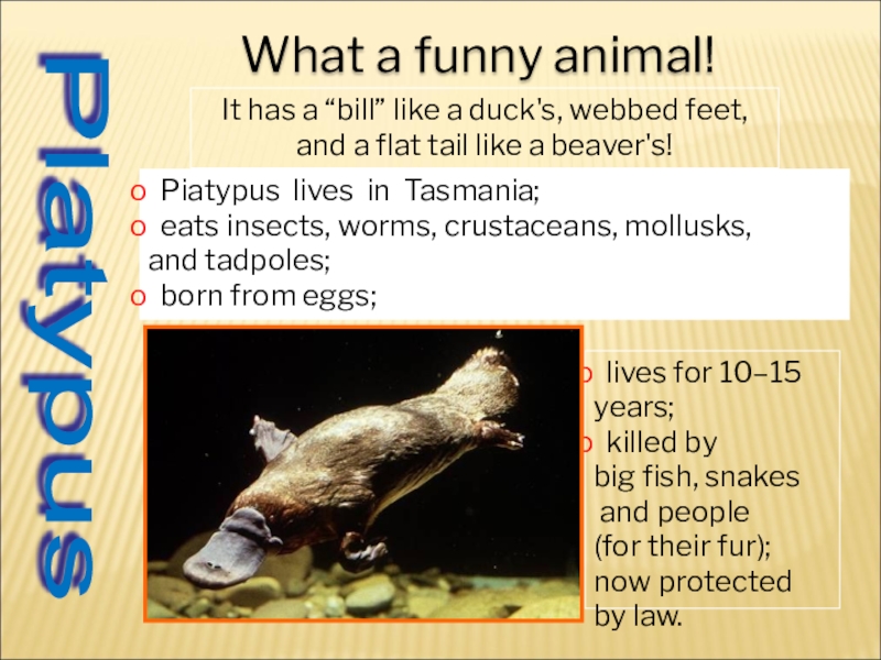 It has a “bill” like a duck's, webbed feet, and a flat tail like a beaver's!
