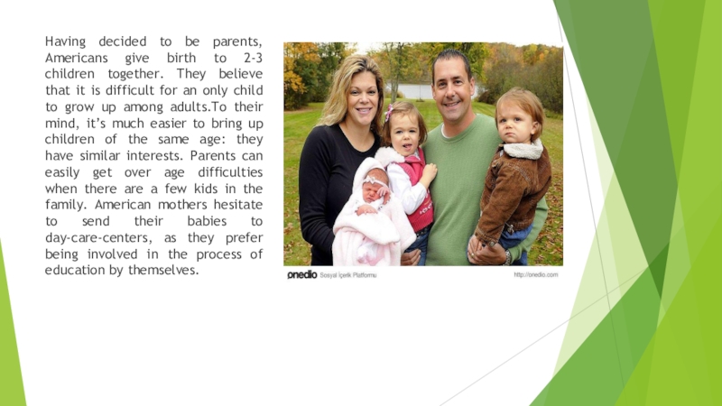 Слайд 2Having decided to be parents, Americans give birth to 2-3 children