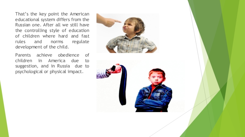 Russian one. After all we still have the controlling style of education of children where hard and fast rules and norms regulate development of the child.