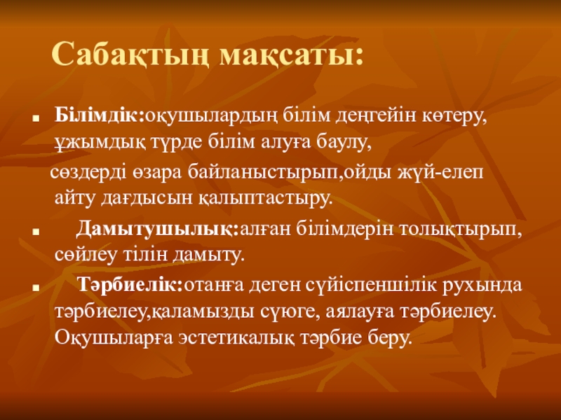 Слайд 2 Сабақтың мақсаты: