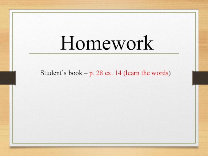 HomeworkStudent`s book – p. 28 ex. 14 (learn the words)
