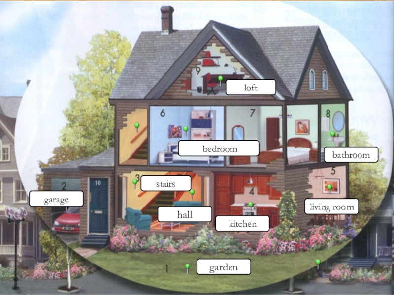gardengaragekitchenliving roombathroom bedroomhallstairsloft