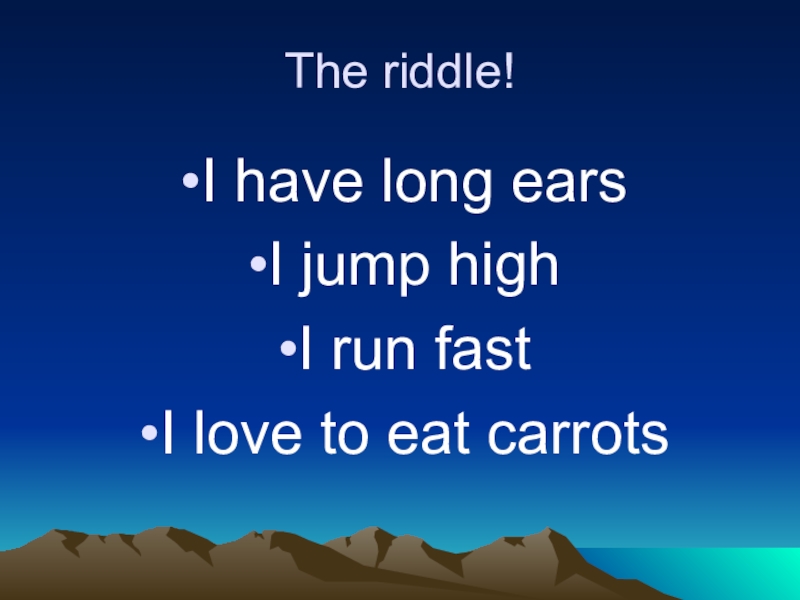The riddle!I have long earsI jump highI run fastI love to eat carrots