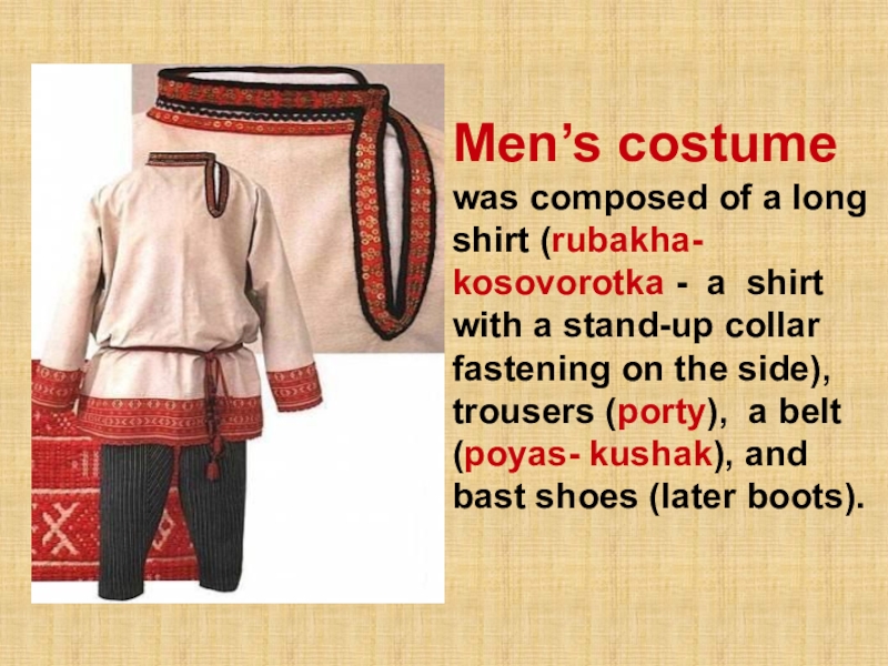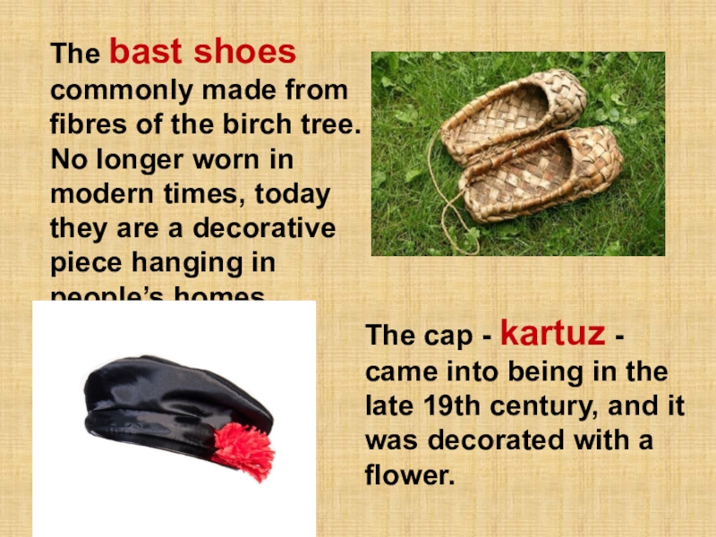 The cap - kartuz - came into being in the late 19th century, and it was decorated with a flower.
