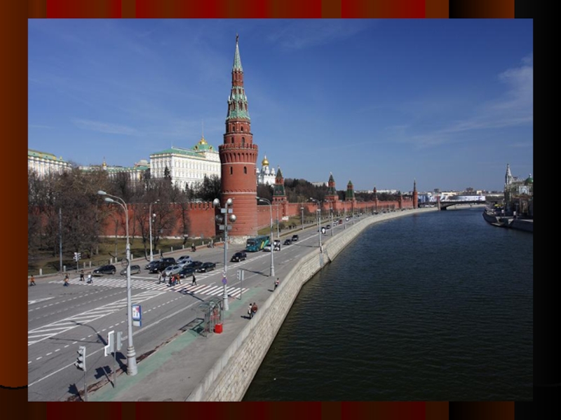 magnificent fortress made of red brick with high walls and lots of churches on its territory. The Kremlin is the seat of the Government.