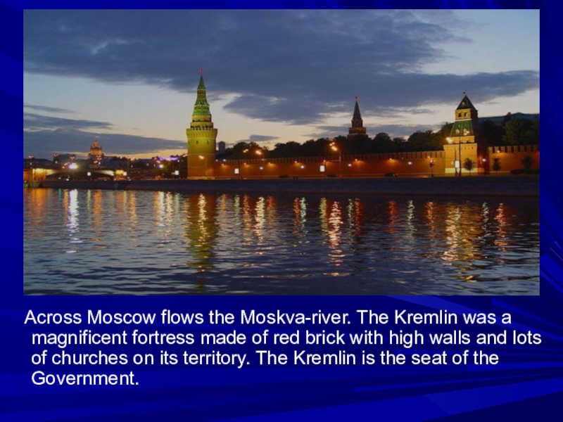 Across Moscow flows the Moskva-river. The Kremlin was a