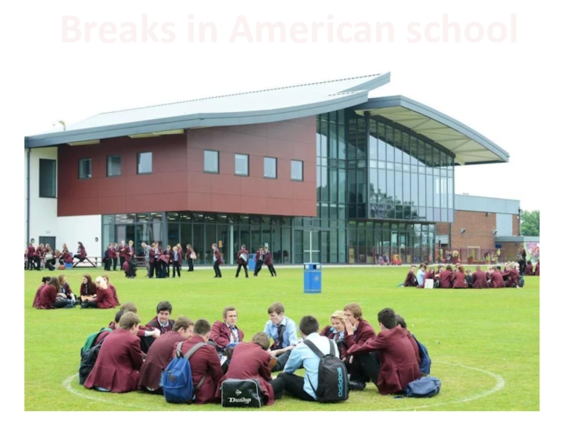 The lessons begin at 7-40. American pupils have 6 lessons a day. Every lesson lasts for an hour. They have a big break for 50 minutes. Pupils can have lunch, go to the garden, sit on the grass.
