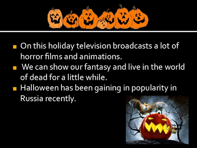 Слайд 5On this holiday television broadcasts a lot of horror films and