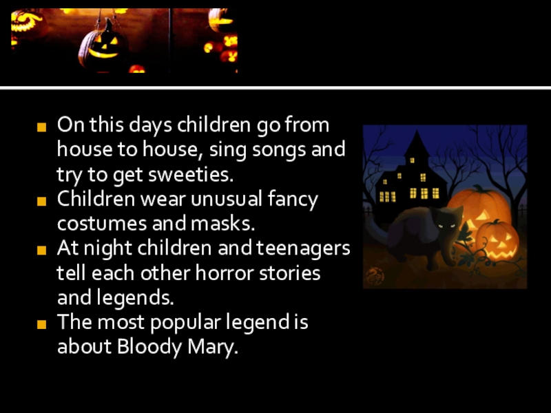On this days children go from house to house, sing songs and try to get sweeties.Children wear