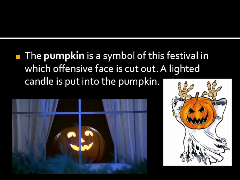 Слайд 3The pumpkin is a symbol of this festival in which offensive