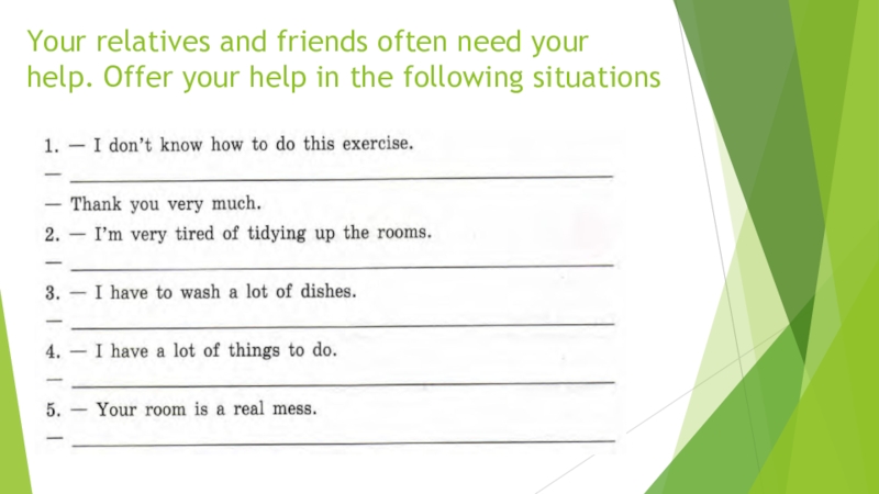 Слайд 11Your relatives and friends often need your help. Offer your help