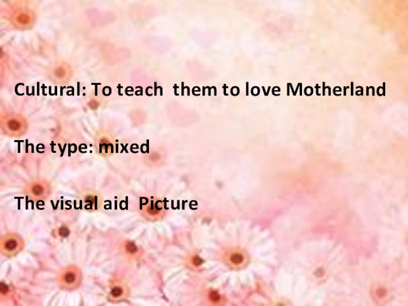 Cultural: To teach them to love MotherlandThe type: mixedThe visual aid Picture
