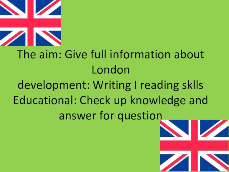 Слайд 2The aim: Give full information about London development: Writing I reading sklls Educational: