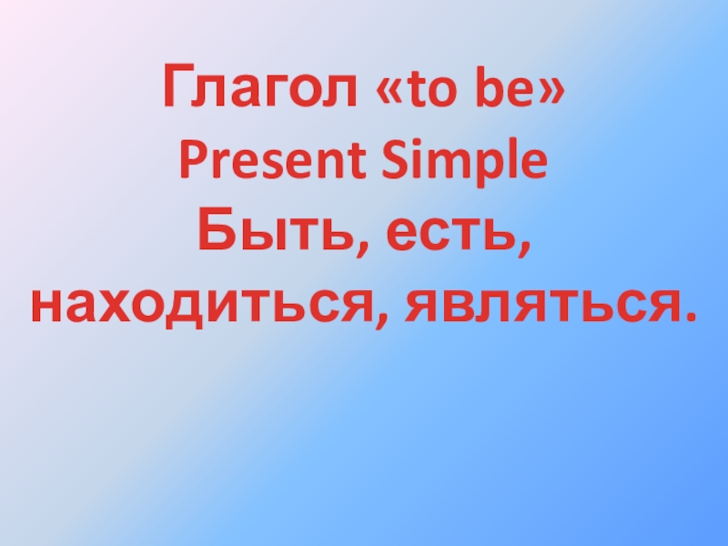 Глагол «to be» Present Simple Быть, есть, находиться, являться.
