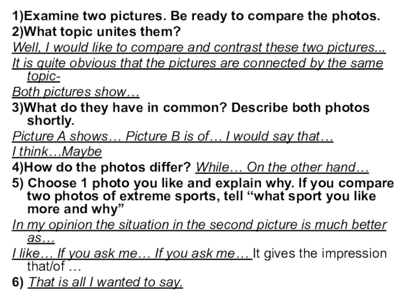 1)Examine two pictures. Be ready to compare the photos. 2)What topic unites them? Well, I would like