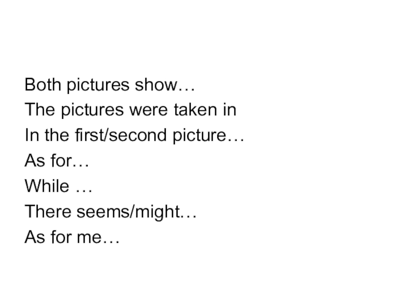 Both pictures show… The pictures were taken in In the first/second picture… As for… While … There seems/might…
