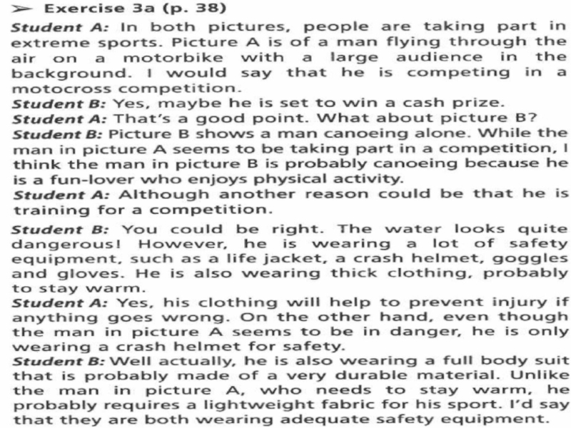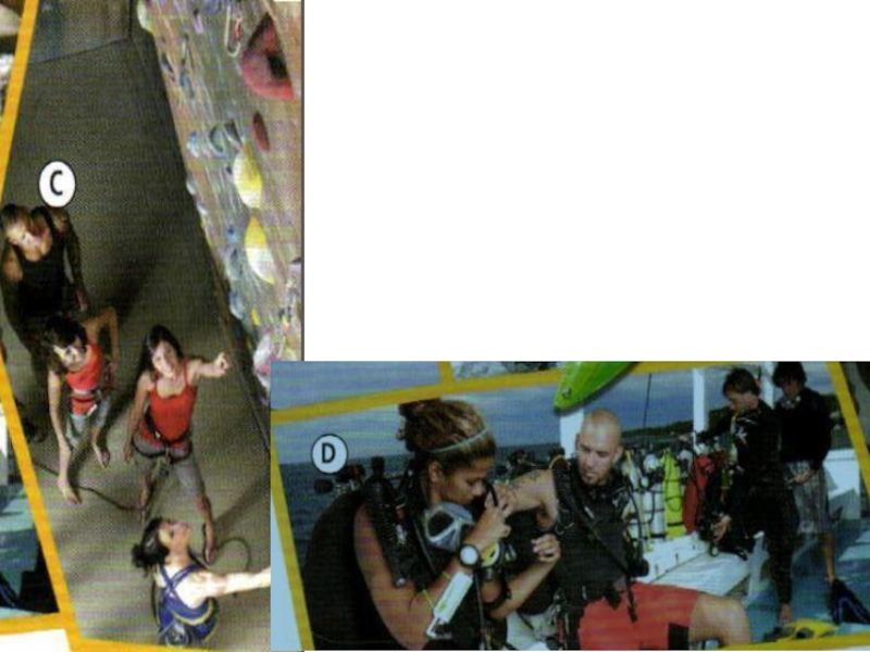5) Choose 1 photo you like and explain why. If you compare two photos of extreme sports, tell “what sport you like more and why”