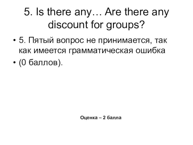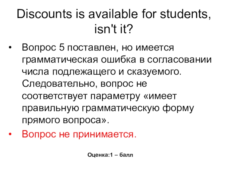 Если вопрос задан, возможные погрешности не затрудняют восприятия, коммуникация состоялась, то выставляется 1 балл.