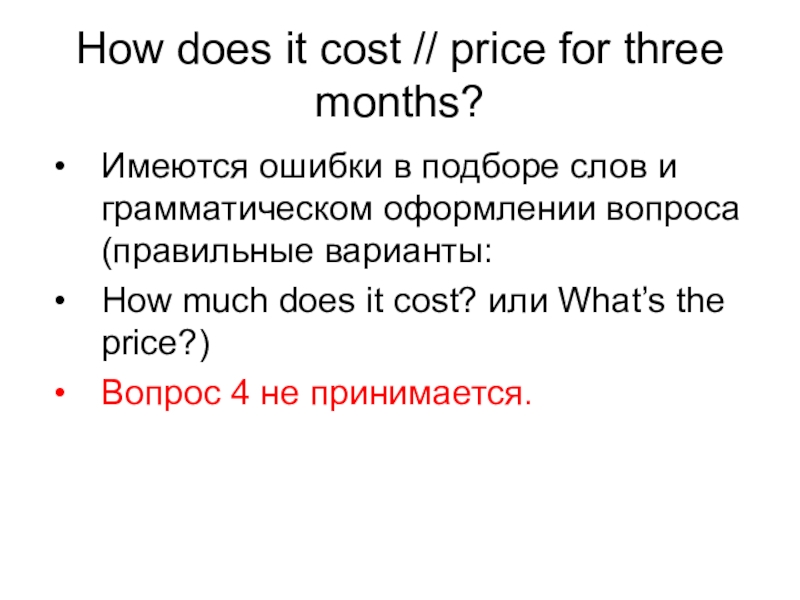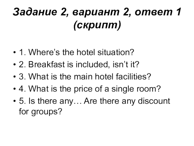 Сокращенные вопросы типа “Could you tell me about the price?” и “What about…” не принимаются.