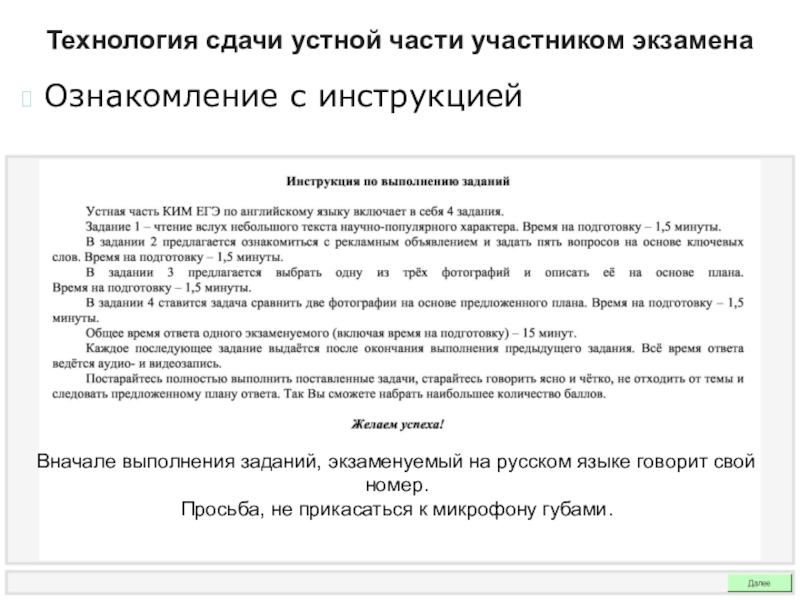 Технология сдачи устной части участником экзамена