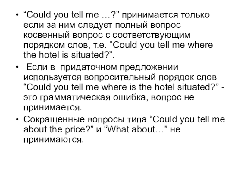 Слайд 17“Could you tell me …?” принимается только если за ним следует