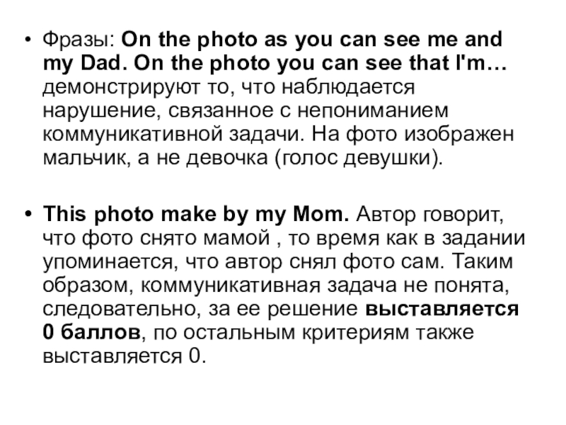 Dad. On the photo you can see that I'm… демонстрируют то, что наблюдается нарушение, связанное с непониманием коммуникативной задачи. На фото изображен мальчик, а не девочка (голос девушки).