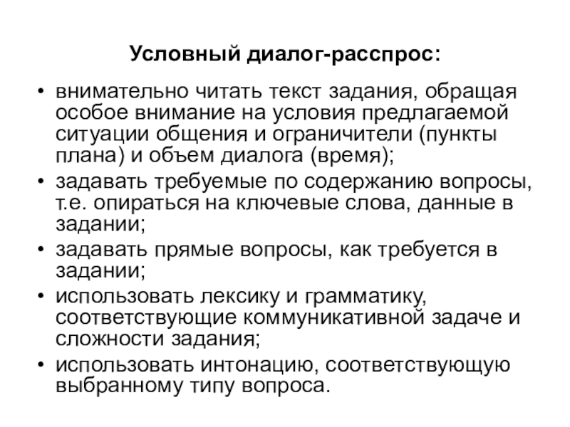 Слайд 15Условный диалог-расспрос: