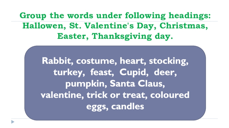 Rabbit, costume, heart, stocking, turkey, feast, Cupid, deer, pumpkin, Santa Claus,