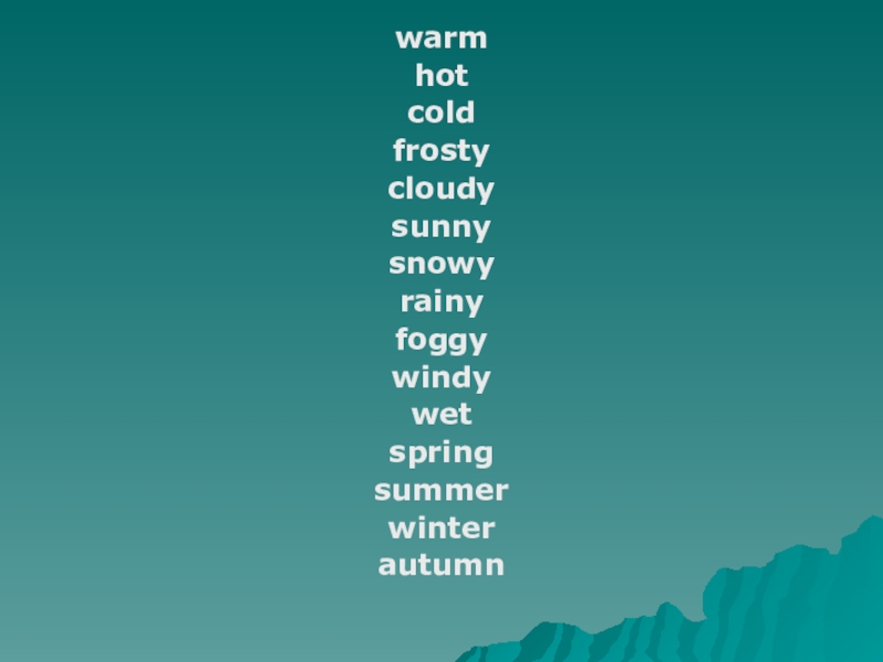 warmhotcoldfrostycloudysunnysnowyrainyfoggywindywetspringsummerwinterautumn