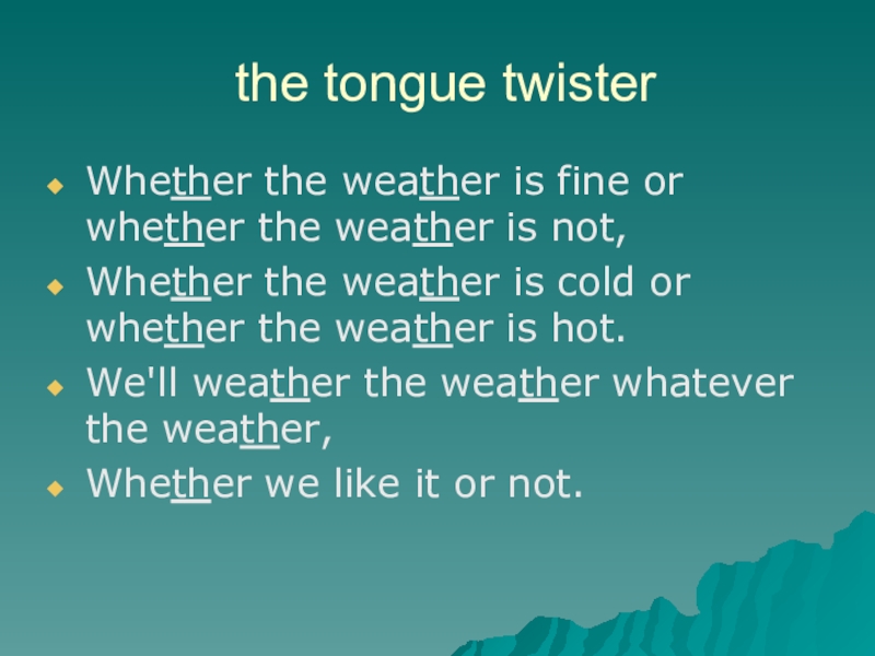 the tongue twister Whether the weather is fine or whether the weather is not, Whether the weather