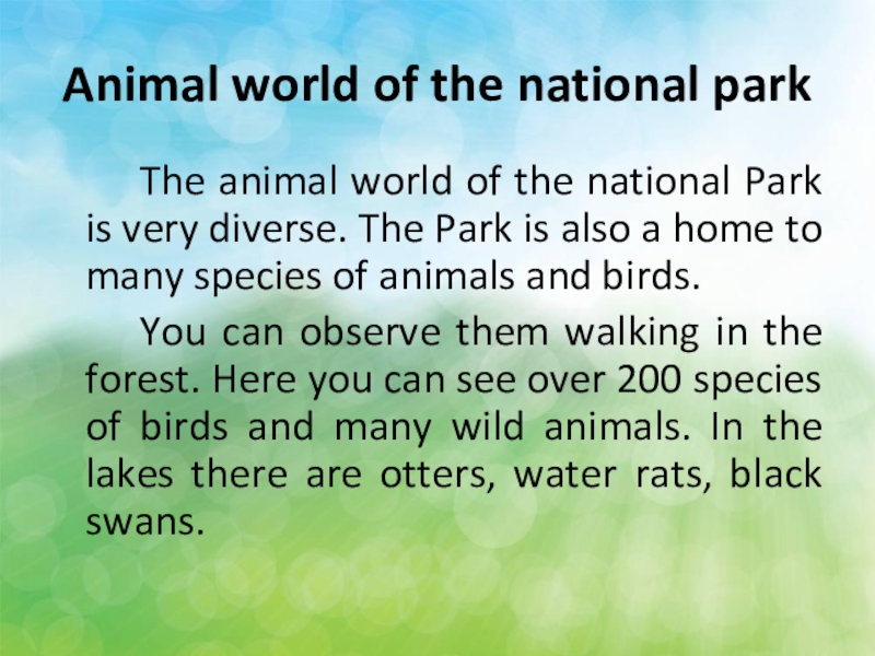 Animal world of the national park		The animal world of the national Park is very diverse. The Park