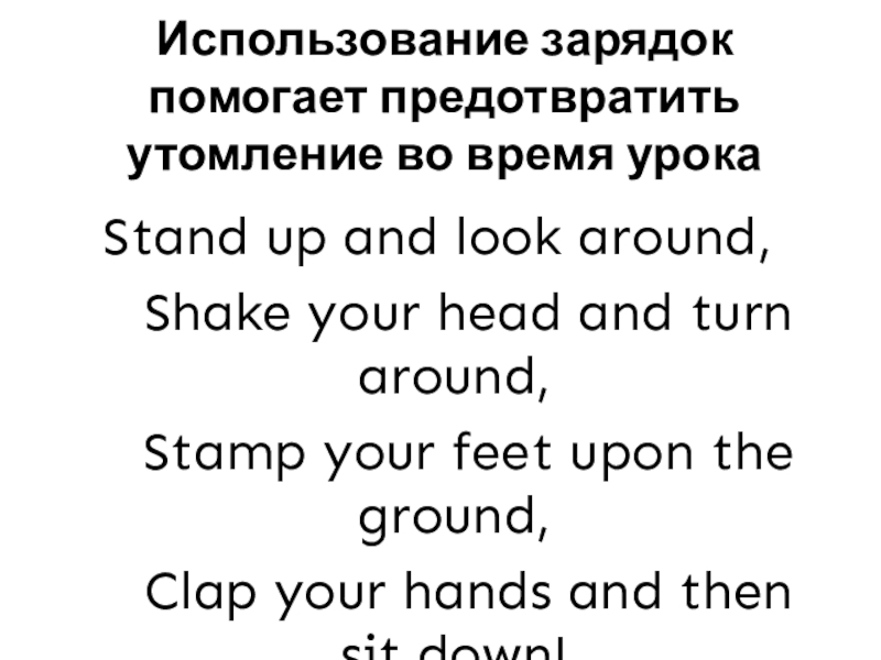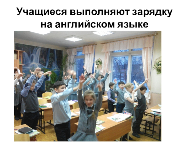 Слайд 7Учащиеся выполняют зарядку на английском языке