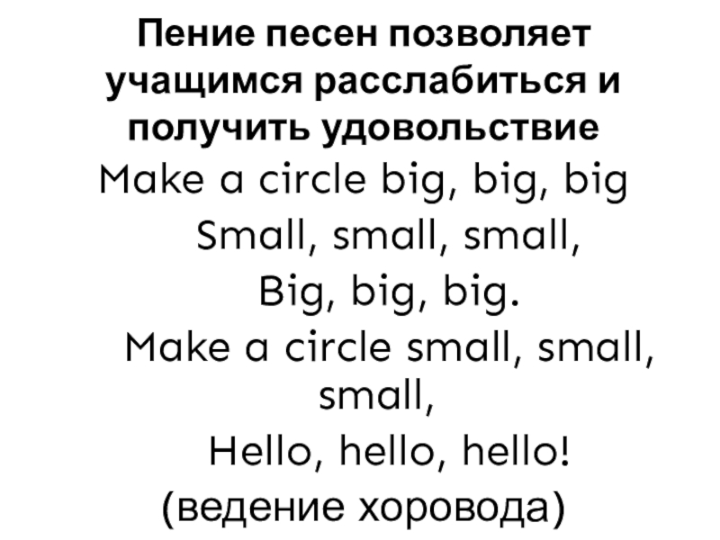 Слайд 8Пение песен позволяет учащимся расслабиться и получить удовольствие